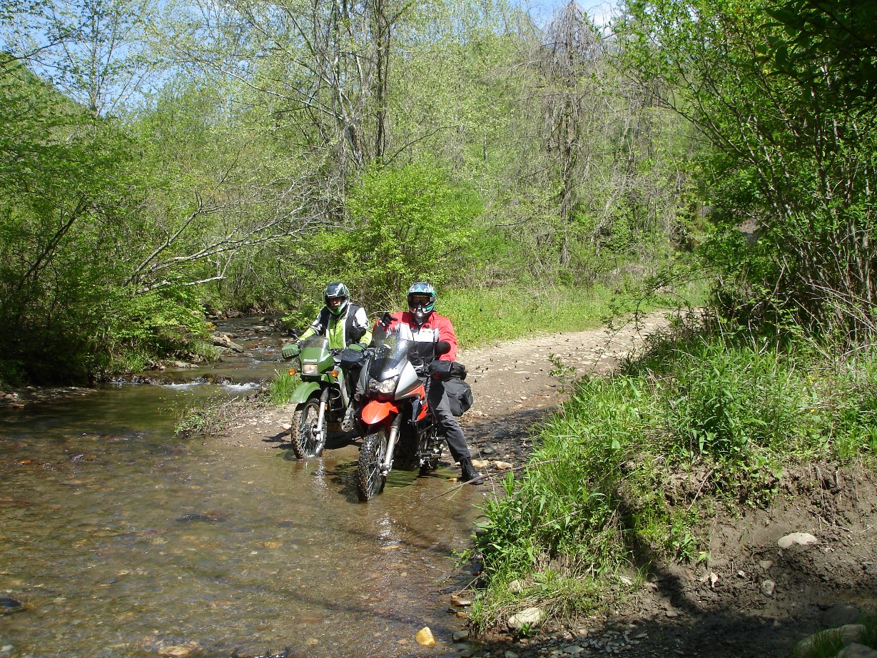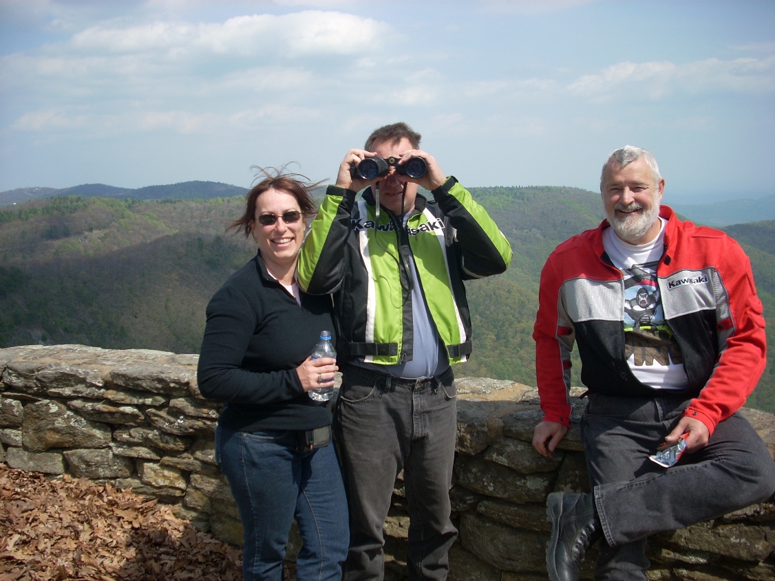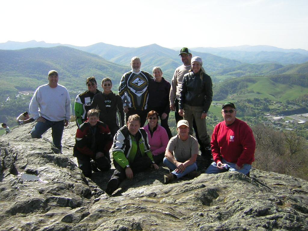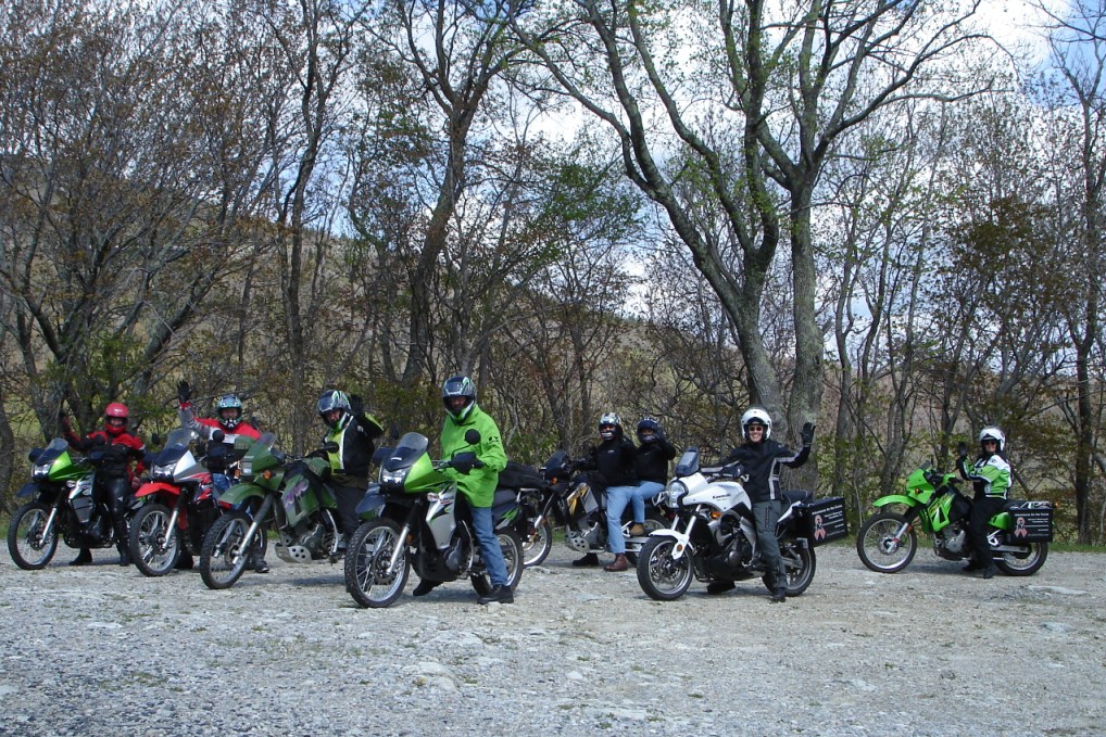 Roy and Laura started talking about a dual sport ride in the North Carolina mountains over a year ago. At every event they worked, Roy said, “We should plan a ride,” and Laura said, “Some people can stay at my cabin.” They finally figured out a date and planned our little Motorcycle Adventure Days for the weekend just prior to Myrtle Beach Bike Week in May. We put out an invitation to all our Kawasaki friends (or Kaw Kousins as we call them since they’re all like family) and were really surprised at the response. Dave was coming out from California on the way to Myrtle Beach – awesome! Gray & Christine were coming in early from New York to make a week out of it. Peg was riding the GPZ down from Boston, and Sue & Gin were coming from upstate New York. Bill was trailering down from Pennsylvania and Danny & Lydia over from Tennessee. Our group rounded out with the North Carolina contingent of Laura, Roy & Shirley and John. Thirteen people coming from all over and meeting up for a weekend of riding and revelry. How good is that?! Gray & Christine arrived late Monday night and started riding with Roy on Tuesday. They rode over the mountain (or two or three) and through the woods, all over the northwest corner of North Carolina and over into Virginia to the top of Mount Rogers and back. Shirley had to work the first couple of days that week and met the riders for dinner that night in North Wilkesboro. Wednesday, the four of us stayed on the dirt roads most of the day, except when we rode down Darnell Creek - literally. Thursday we added Laura and Dave to our group. Dave was driving the Kawasaki tractor trailer loaded with the demo stuff for Myrtle Beach and needed a place to park other than Roy’s steep driveway at the end of a dead-end twisty mountain dirt road. Roy made arrangements with Greg at Brushy Mountain Powersports in Wilkesboro, NC (www.421powersports.com) to park Dave’s truck and off-load the KLR650 that had been strategically loaded at the back of the trailer. Greg was happy to have the equivalent of a gigantic Kawasaki billboard parked at his dealership right on Hwy 421 for a few days and got a kick out of seeing all the KLRs gathered around it for a group photo. We even talked him into coming up for dinner that night bribing him with the prospect of BBQ chicken. Taking the scenic route from North Wilkesboro to Sparta for lunch ate up most of the afternoon and we headed back to Roy’s house to wait for the rest of the crowd to arrive. We only squeezed in around 120 miles that day. Sue & Gin arrived in their RV late Thursday afternoon, followed closely by Peg and John just in front of the rain. Roy moved the grill onto the porch and finished up the chicken. The rain dampened the enthusiasm for a camp fire a bit, but the fresh-baked cookies made up for it. We enjoyed dinner and fellowship and geared up for a full day on Friday. Bill arrived Friday morning just in time to unload his bike and join the ride. We rode some of Roy’s favorite back roads - 50/50 dirt and paved, up and down the eastern face of the Eastern Continental Divide. We headed back to Wilkesboro for lunch and picked up Danny & Lydia. Our group was finally complete. Shirley took the short (ok, short-er 50 mile ride) ride back to the house Friday afternoon with John, Laura and Bill. John was cooking dinner and needed time to prepare, and Bill had been up since 1:00 am so he was ready for a nap. Roy took the rest of the group south to Blowing Rock and jumped on US 221, a really fabulous motorcycle road, to the Lynn Cove Viaduct on the Blue Ridge Parkway. They rode across the viaduct and took the BRP back to Laurel Springs with a short stop at the Moses Cone House where Roy allowed 23 minutes for shopping. John had the hobo stew going and Shirley had the campfire roaring by the time the group arrived. Laura and Dave threw the football around while dinner was cooking. Bill brought out his Glock soft-shot air pistol (and they call us rednecks) and had Peg shooting at targets. She’s watched way too much TV, so Bill corrected her gangst’a shooting style to the proper tactical stance. The beer was cold and the stew was hot as we enjoyed a beautiful sunset. Laura baked a batch of her fabulous home-made cookies to top off the night and we planned the next day’s ride. We took the scenic route over to Laura’s on Saturday morning to gather up the gang at her house and rode over Spicer Mountain to the other side of Sparta. We took Hwy 58 over to Damascus, Virginia for lunch, then rode through Backbone Rock and over to Shady Valley, Tennessee (www.shadyvalleycountrystore.com). We played there on US 421, which truly is “Meaner NA Stripe-ed Snake”, for a while before heading over to Mountain City. We took Hwy 91 back to Damascus and picked up Hwy 58 again (it was so much fun the first time we wanted to do it again). We took the narrow dirt road over to Green Cove and rode up to White Top Station at the top of the Virginia Creeper Trail. We started heading back toward Roy’s house, in a round about way through Lansing and West Jefferson, North Carolina, with a photo op at Mount Jefferson State Natural Area. Christine doctored up the leftovers in the refrigerator turning them into a gourmet dinner, then it was back to the campfire. Rumor has it there were some tall tales told around the fire that night, but we were unable to confirm that. The Weather Channel was predicting bad weather on Sunday, so several in our group took full advantage of the adult beverages Saturday night. Who would have thought that Tequila shots would be the perfect compliment for s’mores? Sunday dawned cold, foggy and raining quite a bit. Everybody packed up to leave, moving rather slowly and drinking lots of coffee. We really enjoyed having our Kawasaki family visit our home and riding our favorite roads with us. We had 8 KLR650s ranging from a 1995 “Malibu Barbie” model to 3 new 2008’s, two 250 Sherpa’s, and one very ne
