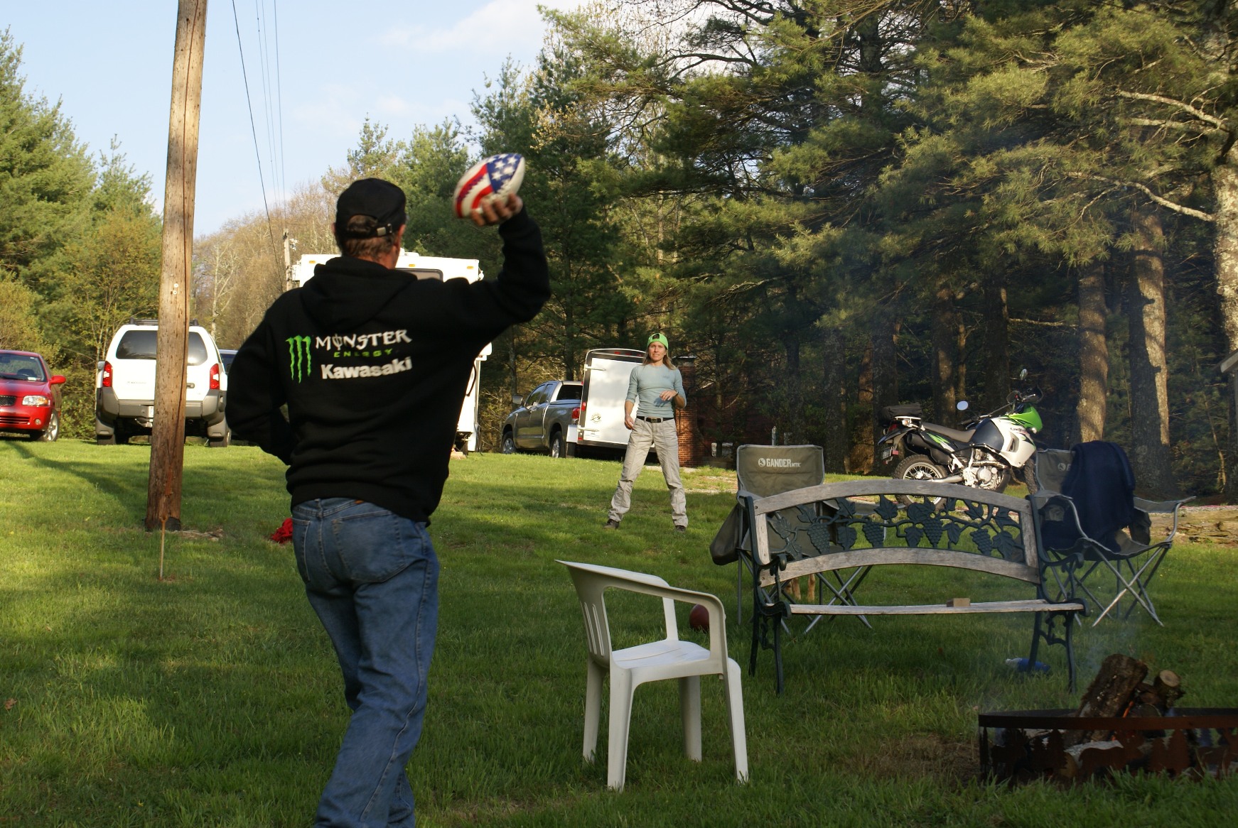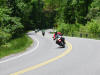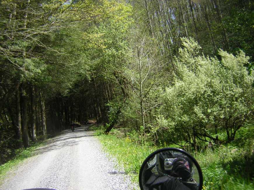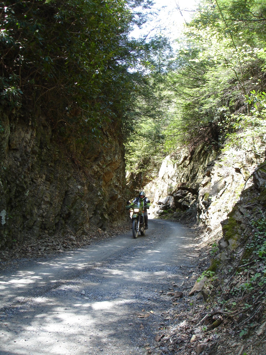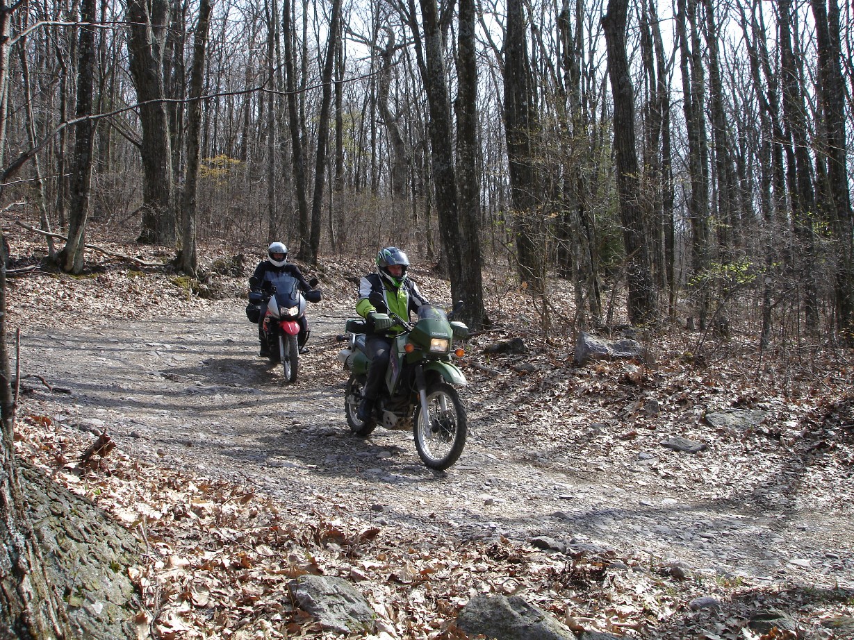 Roy and Laura started talking about a dual sport ride in the North Carolina mountains over a year ago. At every event they worked, Roy said, “We should plan a ride,” and Laura said, “Some people can stay at my cabin.” They finally figured out a date and planned our little Motorcycle Adventure Days for the weekend just prior to Myrtle Beach Bike Week in May. We put out an invitation to all our Kawasaki friends (or Kaw Kousins as we call them since they’re all like family) and were really surprised at the response. Dave was coming out from California on the way to Myrtle Beach – awesome! Gray & Christine were coming in early from New York to make a week out of it. Peg was riding the GPZ down from Boston, and Sue & Gin were coming from upstate New York. Bill was trailering down from Pennsylvania and Danny & Lydia over from Tennessee. Our group rounded out with the North Carolina contingent of Laura, Roy & Shirley and John. Thirteen people coming from all over and meeting up for a weekend of riding and revelry. How good is that?! Gray & Christine arrived late Monday night and started riding with Roy on Tuesday. They rode over the mountain (or two or three) and through the woods, all over the northwest corner of North Carolina and over into Virginia to the top of Mount Rogers and back. Shirley had to work the first couple of days that week and met the riders for dinner that night in North Wilkesboro. Wednesday, the four of us stayed on the dirt roads most of the day, except when we rode down Darnell Creek - literally. Thursday we added Laura and Dave to our group. Dave was driving the Kawasaki tractor trailer loaded with the demo stuff for Myrtle Beach and needed a place to park other than Roy’s steep driveway at the end of a dead-end twisty mountain dirt road. Roy made arrangements with Greg at Brushy Mountain Powersports in Wilkesboro, NC (www.421powersports.com) to park Dave’s truck and off-load the KLR650 that had been strategically loaded at the back of the trailer. Greg was happy to have the equivalent of a gigantic Kawasaki billboard parked at his dealership right on Hwy 421 for a few days and got a kick out of seeing all the KLRs gathered around it for a group photo. We even talked him into coming up for dinner that night bribing him with the prospect of BBQ chicken. Taking the scenic route from North Wilkesboro to Sparta for lunch ate up most of the afternoon and we headed back to Roy’s house to wait for the rest of the crowd to arrive. We only squeezed in around 120 miles that day. Sue & Gin arrived in their RV late Thursday afternoon, followed closely by Peg and John just in front of the rain. Roy moved the grill onto the porch and finished up the chicken. The rain dampened the enthusiasm for a camp fire a bit, but the fresh-baked cookies made up for it. We enjoyed dinner and fellowship and geared up for a full day on Friday. Bill arrived Friday morning just in time to unload his bike and join the ride. We rode some of Roy’s favorite back roads - 50/50 dirt and paved, up and down the eastern face of the Eastern Continental Divide. We headed back to Wilkesboro for lunch and picked up Danny & Lydia. Our group was finally complete. Shirley took the short (ok, short-er 50 mile ride) ride back to the house Friday afternoon with John, Laura and Bill. John was cooking dinner and needed time to prepare, and Bill had been up since 1:00 am so he was ready for a nap. Roy took the rest of the group south to Blowing Rock and jumped on US 221, a really fabulous motorcycle road, to the Lynn Cove Viaduct on the Blue Ridge Parkway. They rode across the viaduct and took the BRP back to Laurel Springs with a short stop at the Moses Cone House where Roy allowed 23 minutes for shopping. John had the hobo stew going and Shirley had the campfire roaring by the time the group arrived. Laura and Dave threw the football around while dinner was cooking. Bill brought out his Glock soft-shot air pistol (and they call us rednecks) and had Peg shooting at targets. She’s watched way too much TV, so Bill corrected her gangst’a shooting style to the proper tactical stance. The beer was cold and the stew was hot as we enjoyed a beautiful sunset. Laura baked a batch of her fabulous home-made cookies to top off the night and we planned the next day’s ride. We took the scenic route over to Laura’s on Saturday morning to gather up the gang at her house and rode over Spicer Mountain to the other side of Sparta. We took Hwy 58 over to Damascus, Virginia for lunch, then rode through Backbone Rock and over to Shady Valley, Tennessee (www.shadyvalleycountrystore.com). We played there on US 421, which truly is “Meaner NA Stripe-ed Snake”, for a while before heading over to Mountain City. We took Hwy 91 back to Damascus and picked up Hwy 58 again (it was so much fun the first time we wanted to do it again). We took the narrow dirt road over to Green Cove and rode up to White Top Station at the top of the Virginia Creeper Trail. We started heading back toward Roy’s house, in a round about way through Lansing and West Jefferson, North Carolina, with a photo op at Mount Jefferson State Natural Area. Christine doctored up the leftovers in the refrigerator turning them into a gourmet dinner, then it was back to the campfire. Rumor has it there were some tall tales told around the fire that night, but we were unable to confirm that. The Weather Channel was predicting bad weather on Sunday, so several in our group took full advantage of the adult beverages Saturday night. Who would have thought that Tequila shots would be the perfect compliment for s’mores? Sunday dawned cold, foggy and raining quite a bit. Everybody packed up to leave, moving rather slowly and drinking lots of coffee. We really enjoyed having our Kawasaki family visit our home and riding our favorite roads with us. We had 8 KLR650s ranging from a 1995 “Malibu Barbie” model to 3 new 2008’s, two 250 Sherpa’s, and one very ne